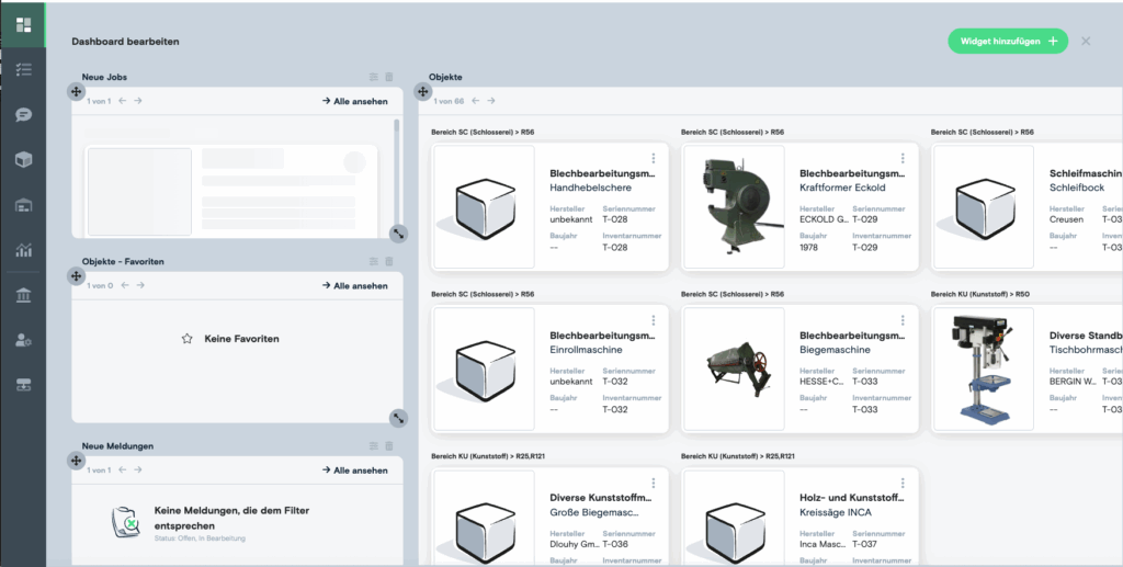 Das Dashboard bietet Ihnen eine personalisierbare Übersicht über alle für Sie relevanten Informationen in ObJack. Sie können Widgets individuell hinzufügen, anordnen oder entfernen, um Ihre Arbeitsoberfläche optimal an Ihre Bedürfnisse anzupassen. So behalten Sie wichtige Kennzahlen, aktuelle Jobs, Meldungen und Statusinformationen jederzeit im Blick.